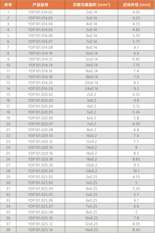 使用溫度范圍 : 非拖鏈內運動:-5 ℃ 至 105 ℃